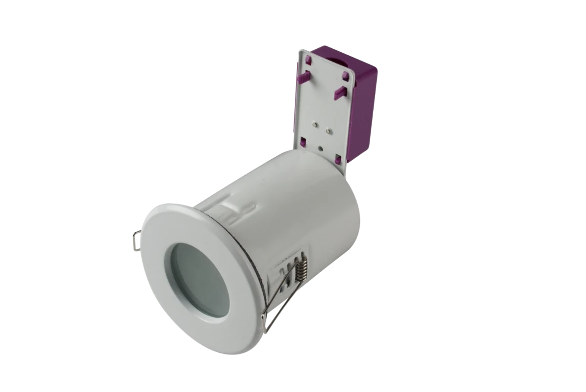 - STARLING 50W Mains Voltage steel Fire Rated Shower Downlight, IP65, 91mm, White